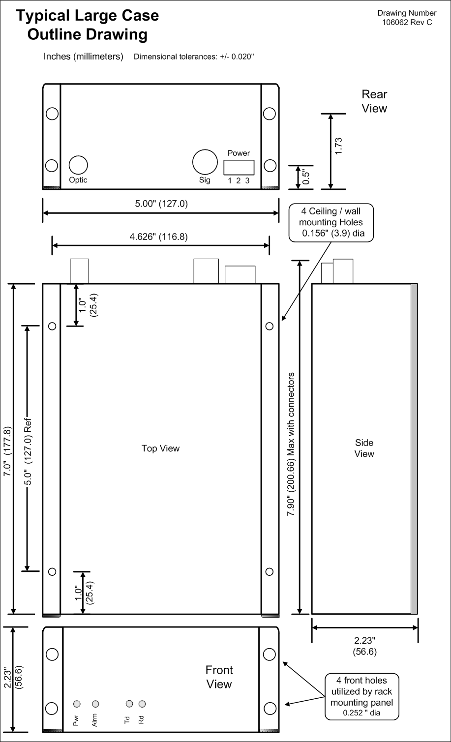 Products with the Large case outline occupy two positions in the rack mounting panel. Example product in this configuration is the PS-1260, 6 Amp power supply.